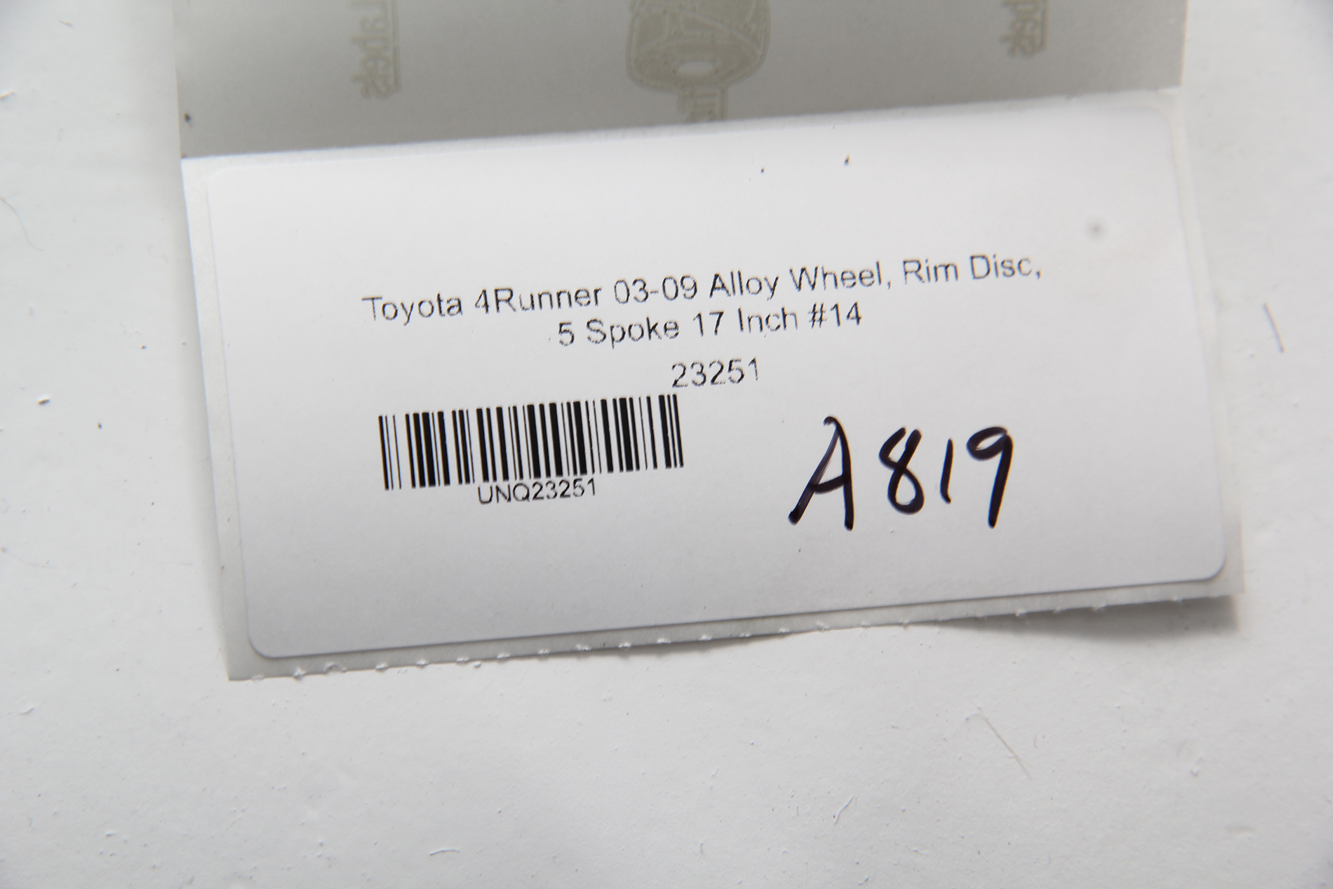Toyota 4Runner 03-09 Alloy Wheel, Rim Disc, 5 Spoke 17 Inch #14, A819, OEM, 2003, 2004, 2005, 2006, 2007, 2008, 2009Toyota 4Runner 03-09 Alloy Wheel, Rim Disc, 5 Spoke 17 Inch #14, A819, OEM, 2003, 2004, 2005, 2006, 2007, 2008, 2009Toyota 4Runner 03-09 Alloy Wheel, Rim Disc, 5 Spoke 17 Inch #14, A819, OEM, 2003, 2004, 2005, 2006, 2007, 2008, 2009Toyota 4Runner 03-09 Alloy Wheel, Rim Disc, 5 Spoke 17 Inch #14, A819, OEM, 2003, 2004, 2005, 2006, 2007, 2008, 2009Toyota 4Runner 03-09 Alloy Wheel, Rim Disc, 5 Spoke 17 Inch #14, A819, OEM, 2003, 2004, 2005, 2006, 2007, 2008, 2009Toyota 4Runner 03-09 Alloy Wheel, Rim Disc, 5 Spoke 17 Inch #14, A819, OEM, 2003, 2004, 2005, 2006, 2007, 2008, 2009Toyota 4Runner 03-09 Alloy Wheel, Rim Disc, 5 Spoke 17 Inch #14, A819, OEM, 2003, 2004, 2005, 2006, 2007, 2008, 2009